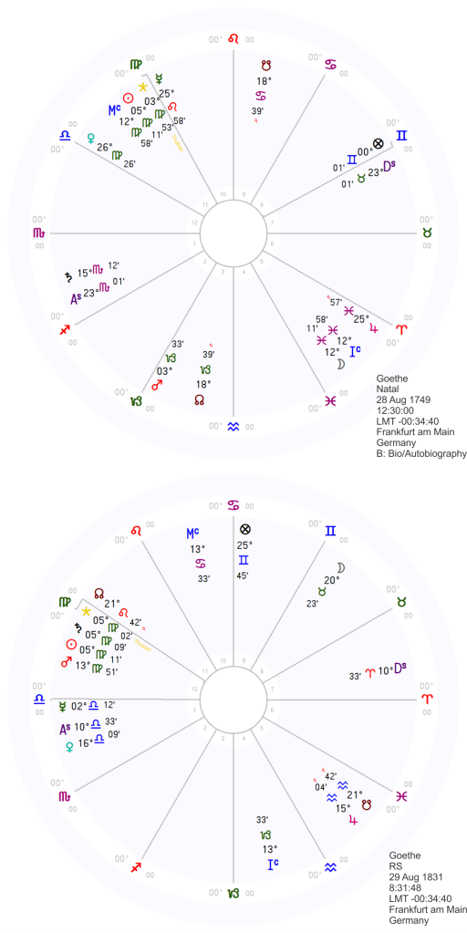 O Asc radix torna-se a casa III da profecção e a III do radix a V da profecção, conectando Goethe, sua escrita e sua obra.
